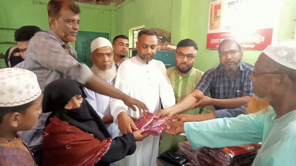 পিরোজপুরের ইন্দুরকানীতে বিশিষ্ট ব্যবসায়ী ও সমাজ সেবক মনিরুল ইসলাম মারুফ ঈদ উপহার বিতরণ করেছেন। শনিবার সকাল ১০ টায় উপজেলার পত্তাশী ইউনিয়নের প্রতিটি ওয়ার্ডে চারশত গরিব মেহনতী মানুষের মাঝে শাড়ি ও লুঙ্গী বিতরণ করা হয়।