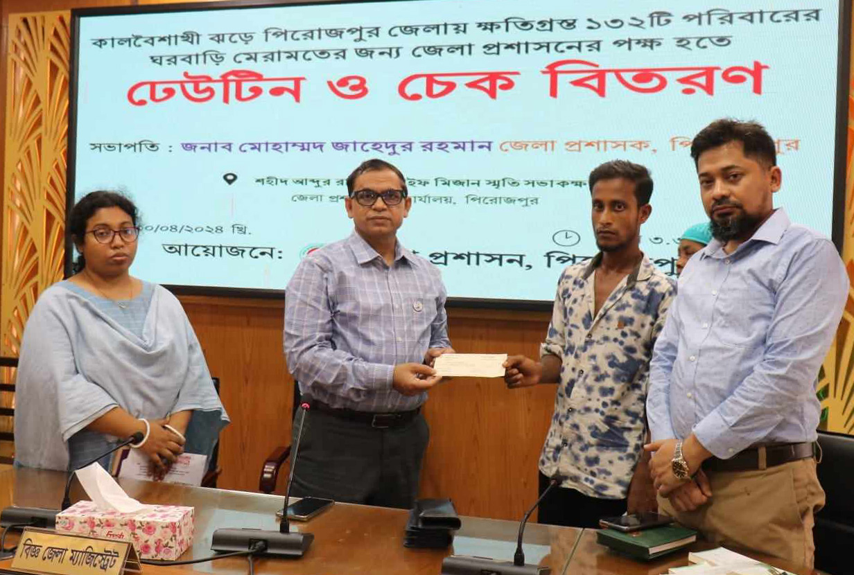 এর আগে সকালে কালবৈশাখী ঝড়ে ক্ষতিগ্রস্ত ৫০ টি পরিবারকে ঘরবাড়ি মেরামতের জন্য বিভাগীয় কমিশনার এর বিশেষ অনুদান উপখাত হতে প্রাপ্ত বরাদ্দ হতে পরিবার প্রতি ৩ হাজার টাকার চেক বিতরণ করেন জেলা প্রশাসক।