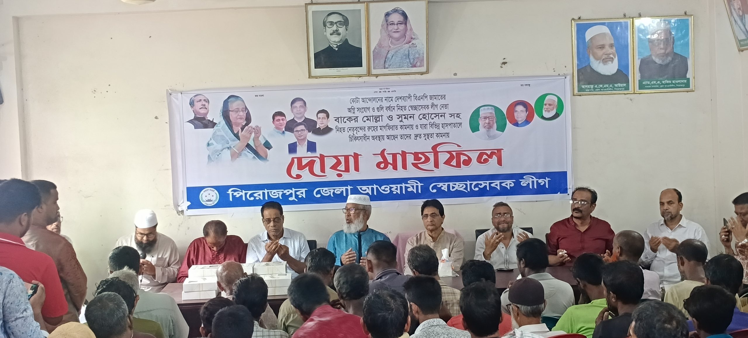 পিরোজপুরে কোটা আন্দোলনের নামে জামায়াত-বিএনপির হামলায় নিহত স্বেচ্ছাসেবকলীগ নেতা বাকের মোল্লা ওসুমন হোসেন সহ নিহত সকলের জন্য দোয়া মোনাজাত অনুষ্ঠিত হয়েছে।