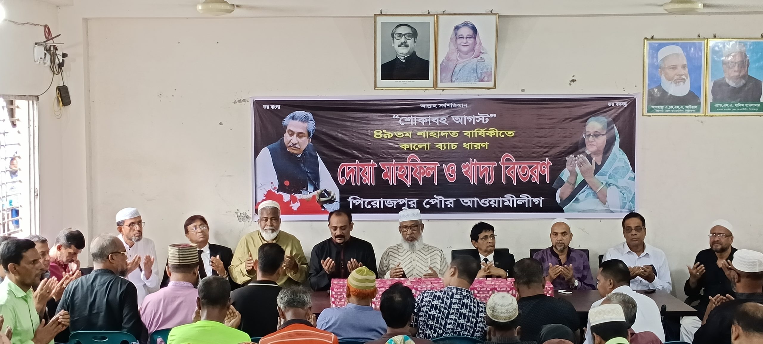 পিরোজপুরে জাতির পিতার ৪৬ তম শাহাদাত বার্ষিকী শোকাবহ আগস্টের প্রথম দিনে কালব্যাচ ধারন ও দোয়া মহফিল