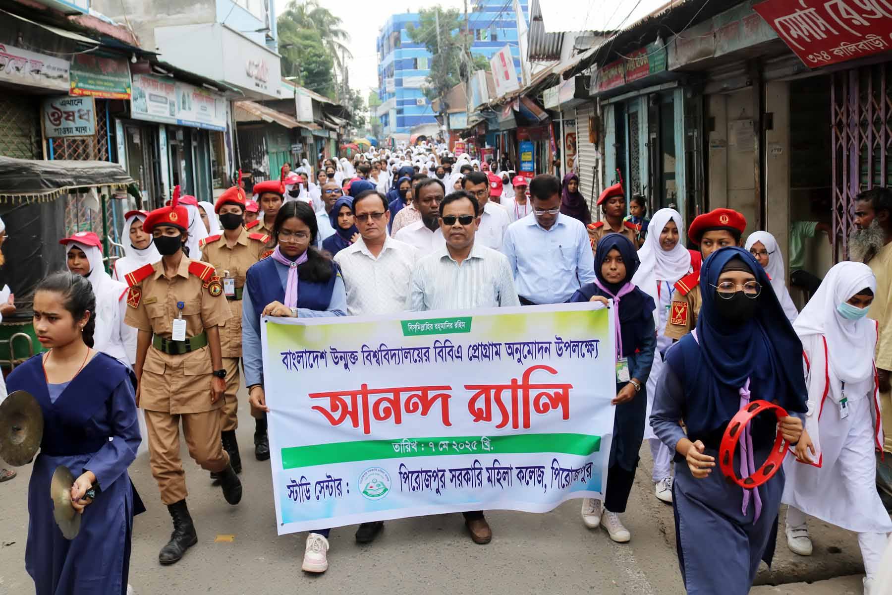 পিরোজপুর সরকারী মহিলা কলেজে বাংলাদেশ উন্মুক্ত বিশ্ববিদ্যােয়ের বিবিএ প্রগ্রামের অনুমোদন পাওয়ায় আনন্দে র্যালী করেছে শিক্ষক শিক্ষার্থীরা। মঙ্গলবার বেলা ১১টায় পিরোজপুর সরকারী মহিলা কলেজে প্রাঙ্গন থেকে একটি আনন্দ র্যালী বের হয়ে শহরের বিভিন্ন সড়ক প্রদক্ষিণ করে পুনরায় কলেজ প্রাঙ্গনে এসে শেষ হয়।